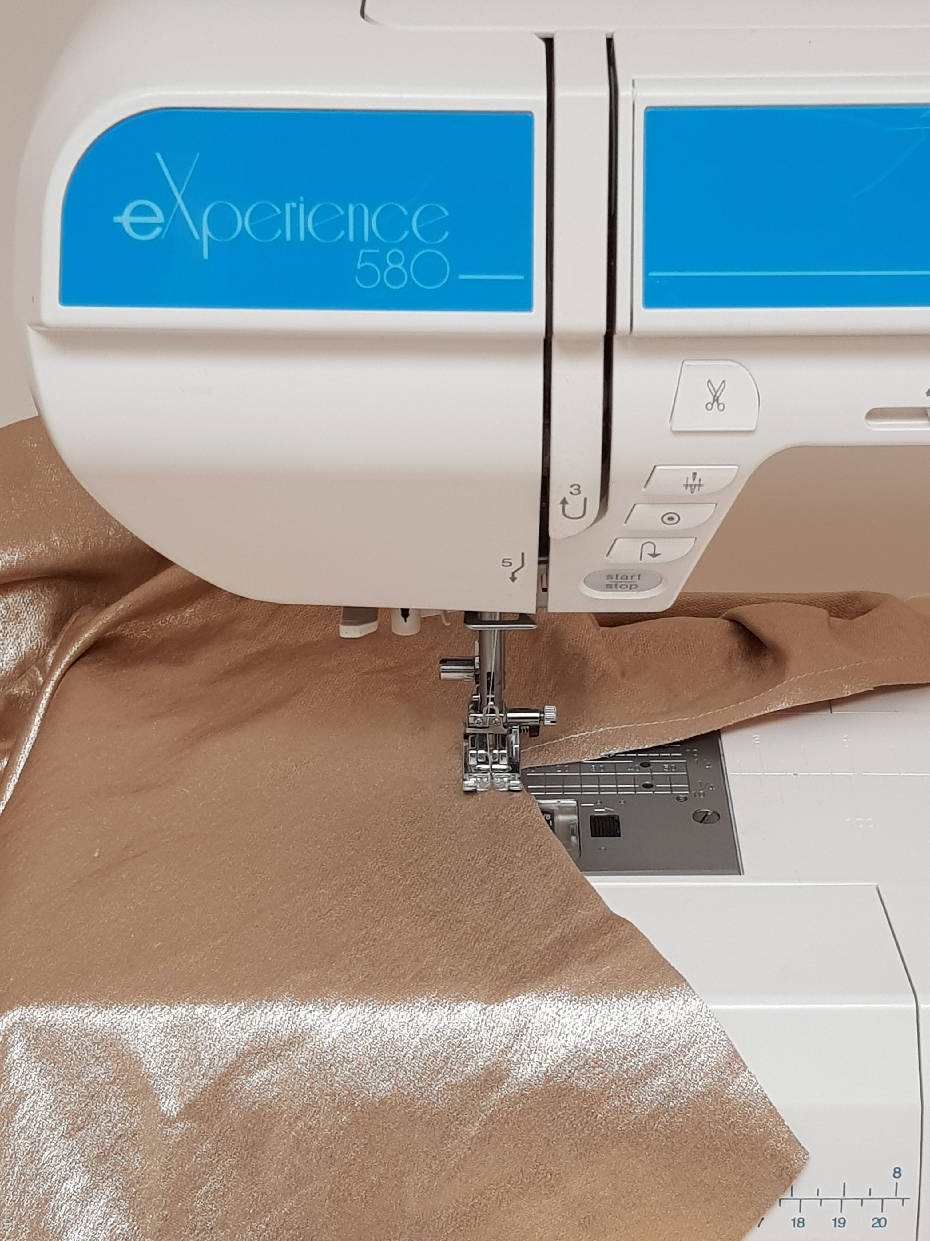 In der Praxis bedeutet das, dass man im Abstand von ca. 8 mm (ein bisschen weniger als die Nähfußbreite), parallel zu Schnittkante mit Geradstich näht.